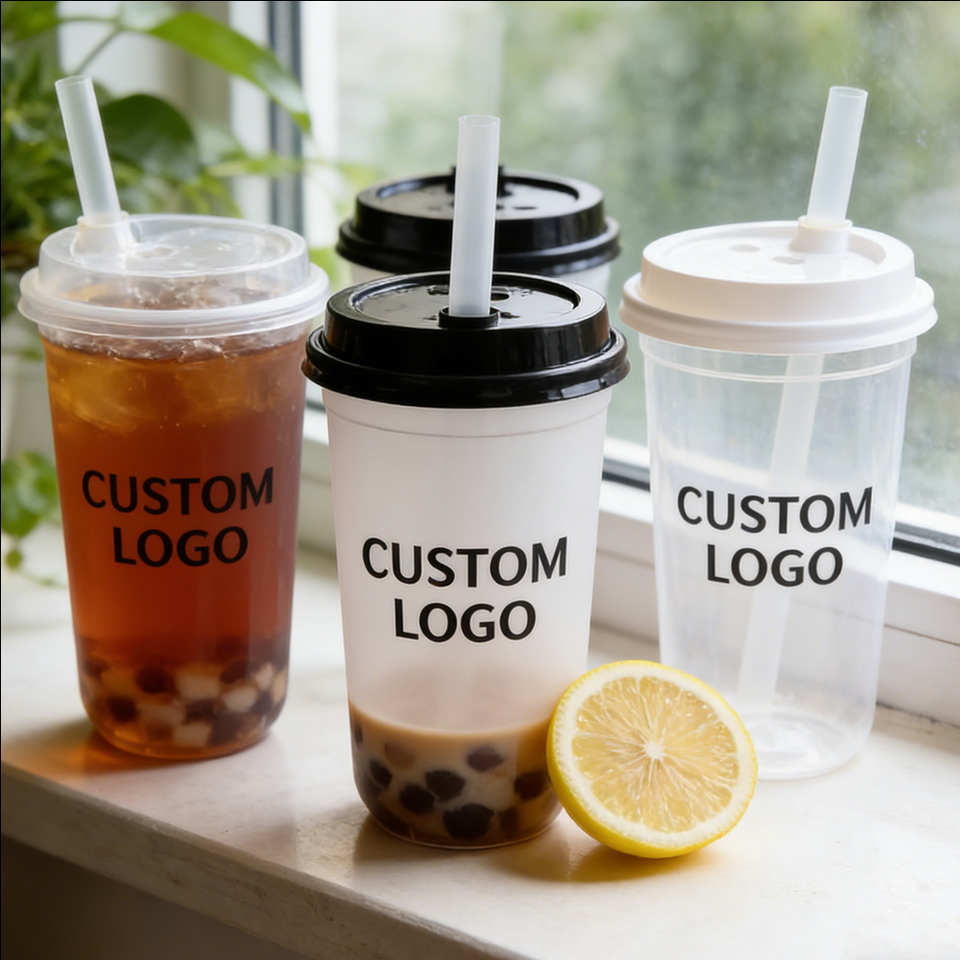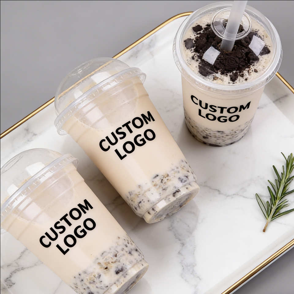 แก้วน้ำชาเย็นแบบใช้แล้วทิ้ง ขนาด 32 ออนซ์ 16 ออนซ์ 200 มล. วัสดุ PET ผนังเดี่ยว แบบฝ้า เส้นผ่านศูนย์กลาง 90 มม. พิมพ์ลาย UV ตามสั่ง