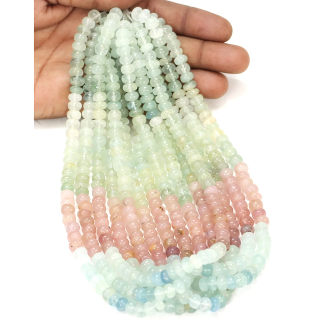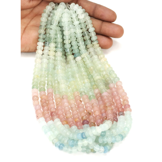 ลูกปัดทรงรอนเดลสีฟ้าอมเขียวนม: อัญมณีหลากสีสำหรับทำเครื่องประดับ ขนาด 8-10 มม.