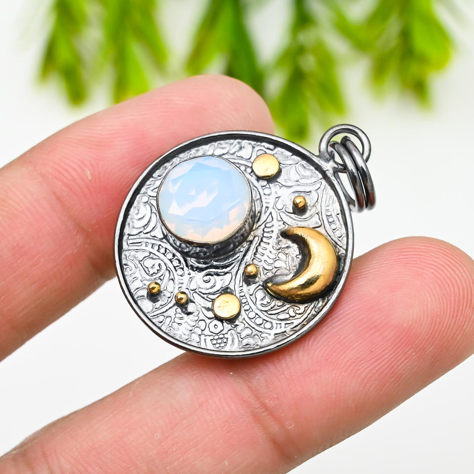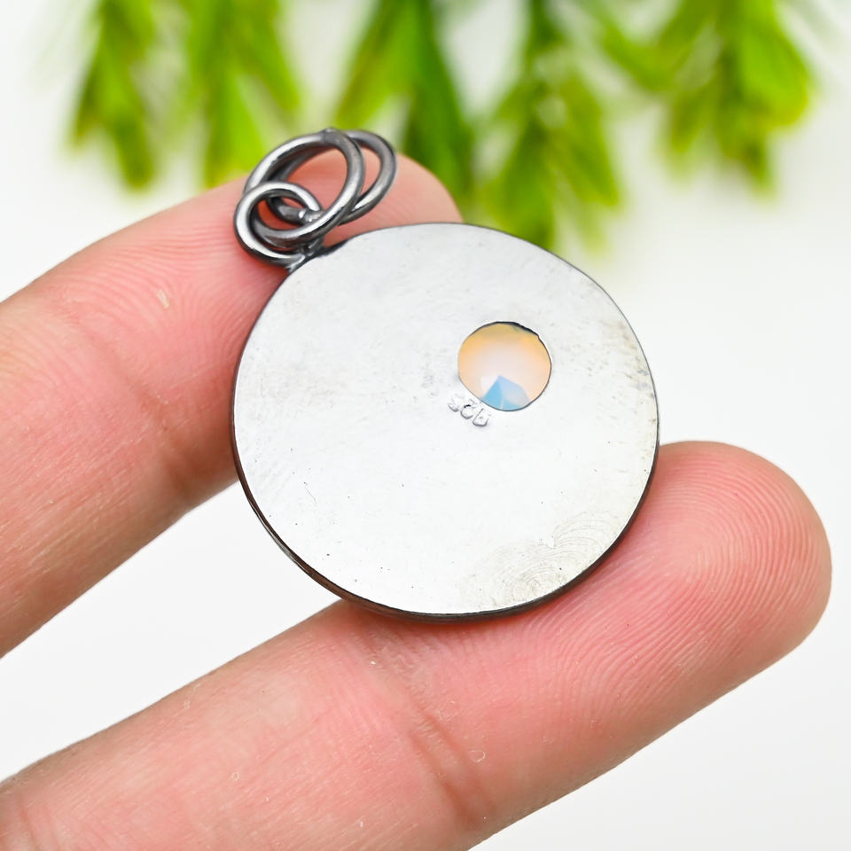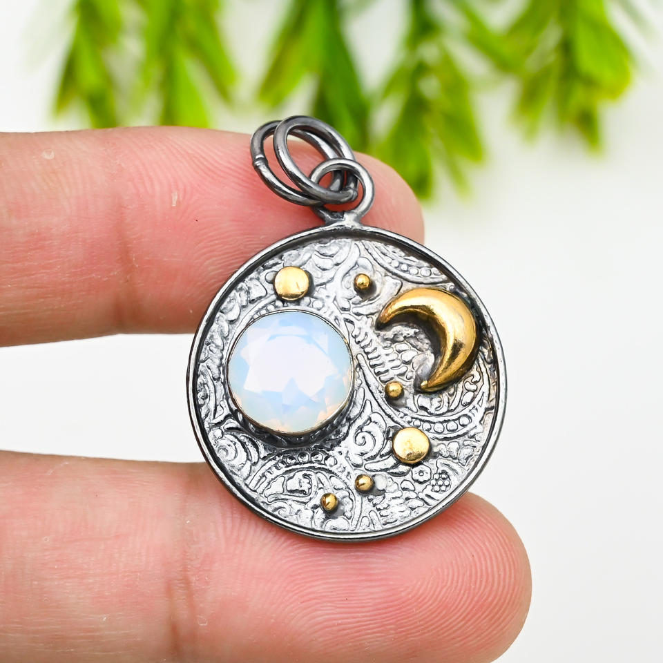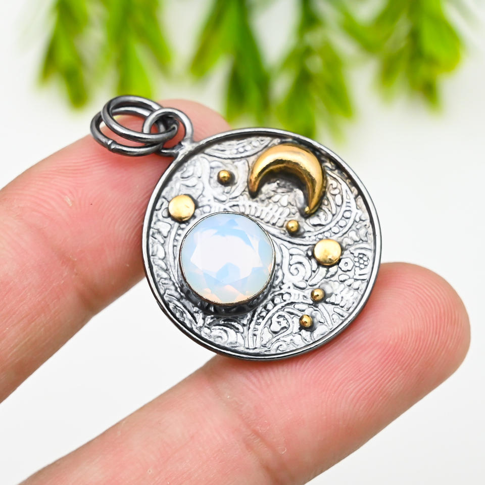 จี้โอปอลสีนม 10 มม. ตัดเจียระไนหลากสี พลอยสังเคราะห์ หรูหรา ชุบเงิน ของขวัญสำหรับงานหมั้น งานแต่งงาน งานครบรอบ หรืองานเลี้ยง