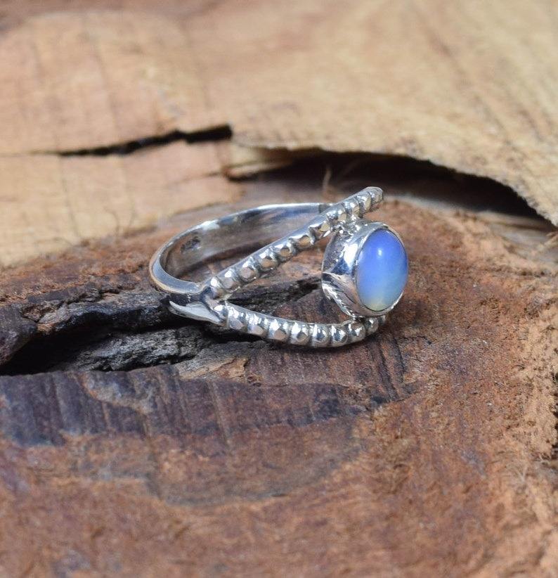 แหวนโอปอลสีนม925อัญมณีเงินสเตอร์ลิงแหวนที่สง่างามเรียบง่ายแหวนทรงกลมของขวัญสำหรับเธอเดือนตุลาคม