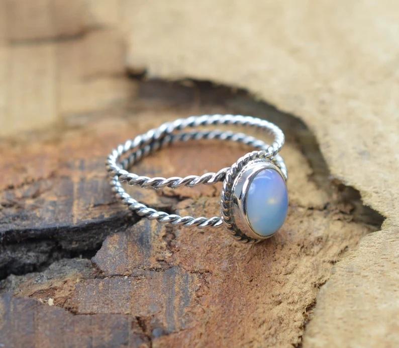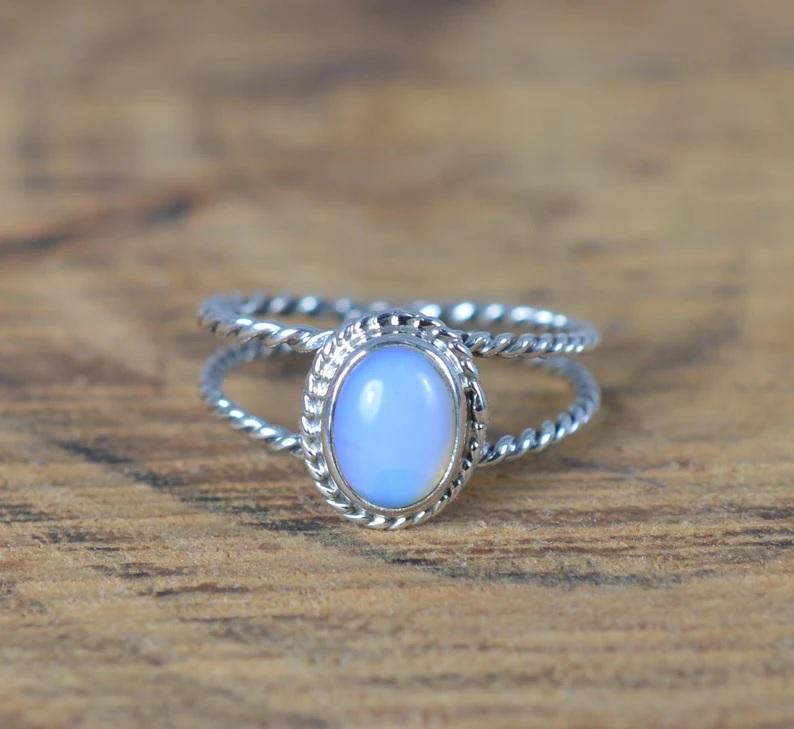 แหวนอัญมณีเงินสเตอร์ลิง925โอปอลสีมิลค์กี้ทำด้วยมือของขวัญเครื่องประดับที่สง่างามสำหรับเป็นของขวัญวันเกิดของเธอ