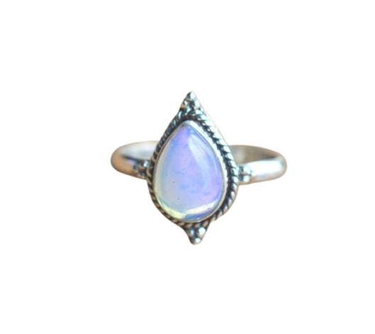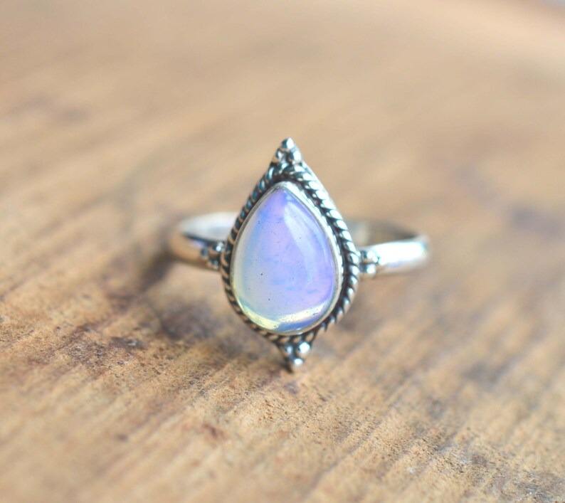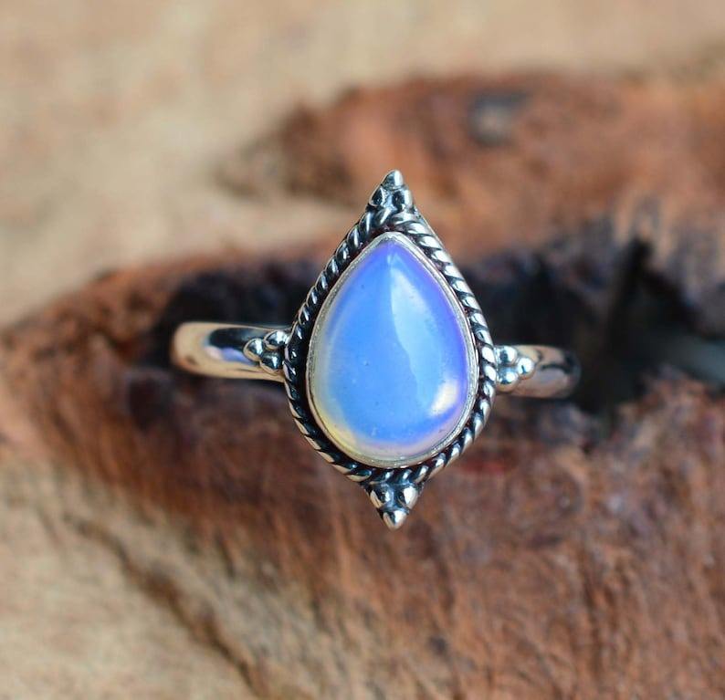 แหวนอัญมณีโอปอลสีนมสำหรับผู้หญิงเครื่องประดับสไตล์โบฮีเมียนสีเงิน925สเตอร์ลิงแหวนแฮนด์เมดของขวัญสำหรับเธอ