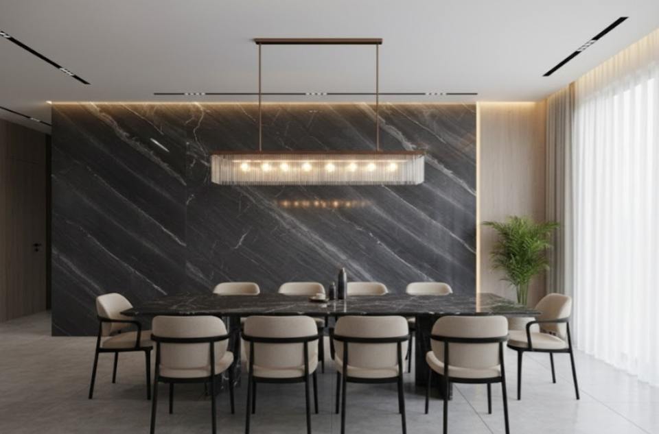 กระเบื้องหินอ่อนสีเทา Millennium Grey แผ่นหินอินเดียสมัยใหม่สำหรับปูพื้นห้องนั่งเล่น ห้องรับประทานอาหาร ห้องครัว ภายนอกอาคาร โครงการวิลล่า
