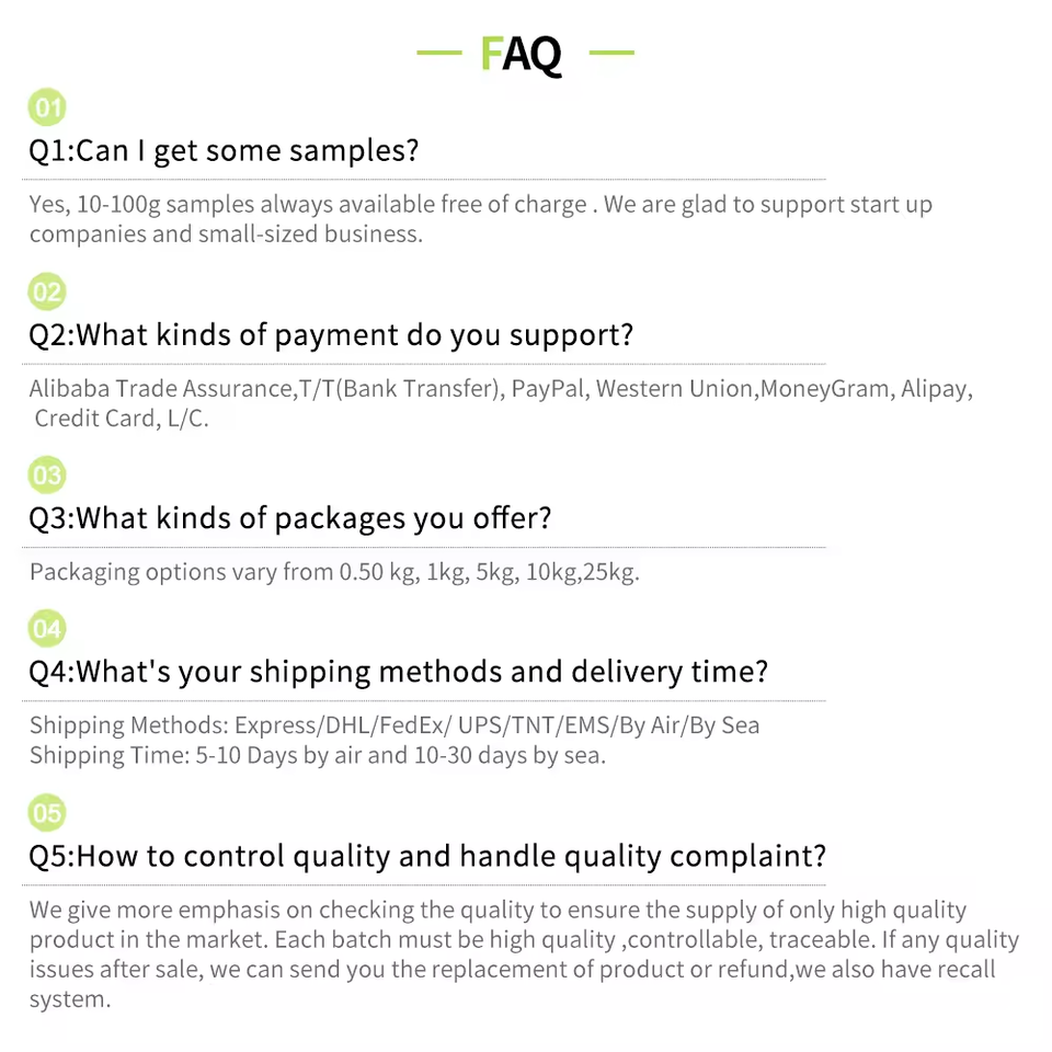 บรรจุภัณฑ์:1 กก./ถุงอลูมิเนียมฟอยล์, 25 กก./ถัง