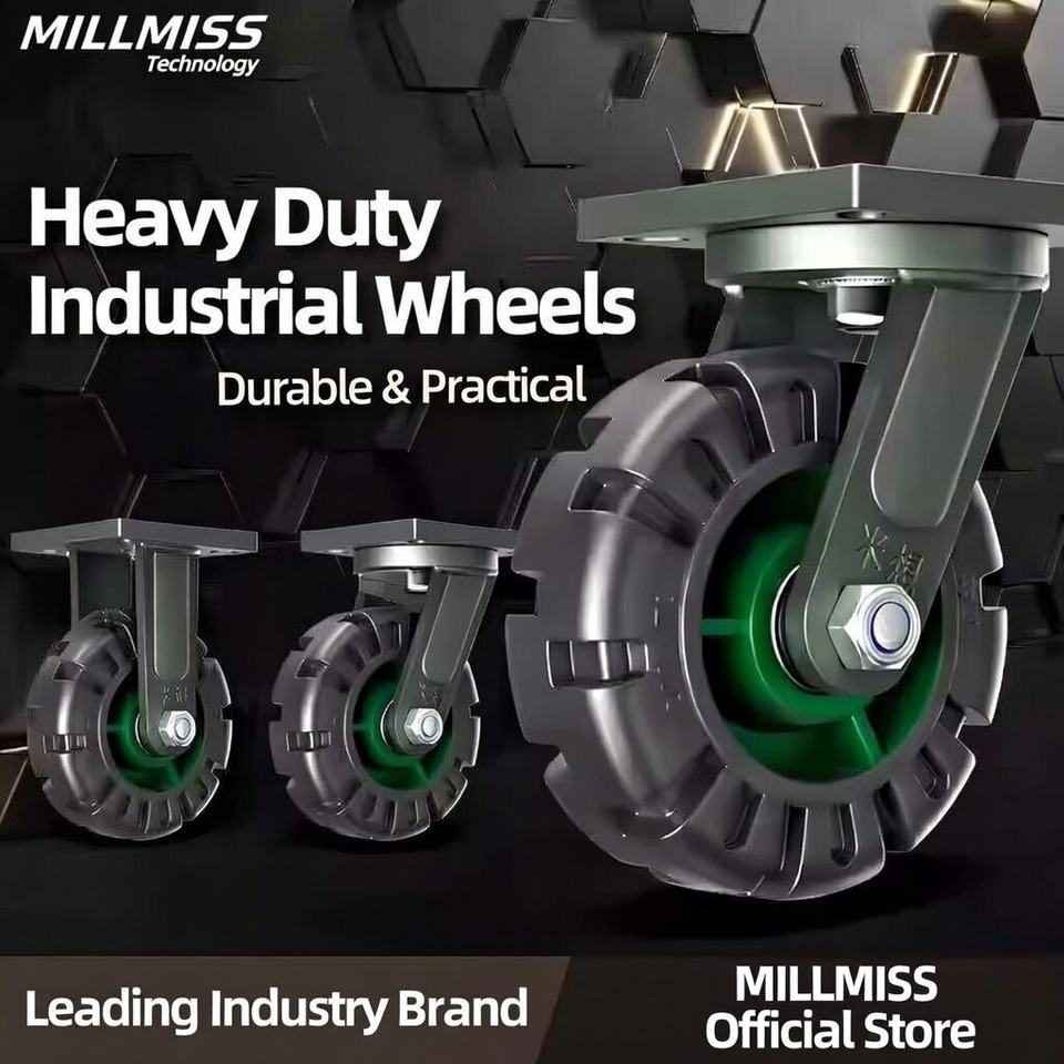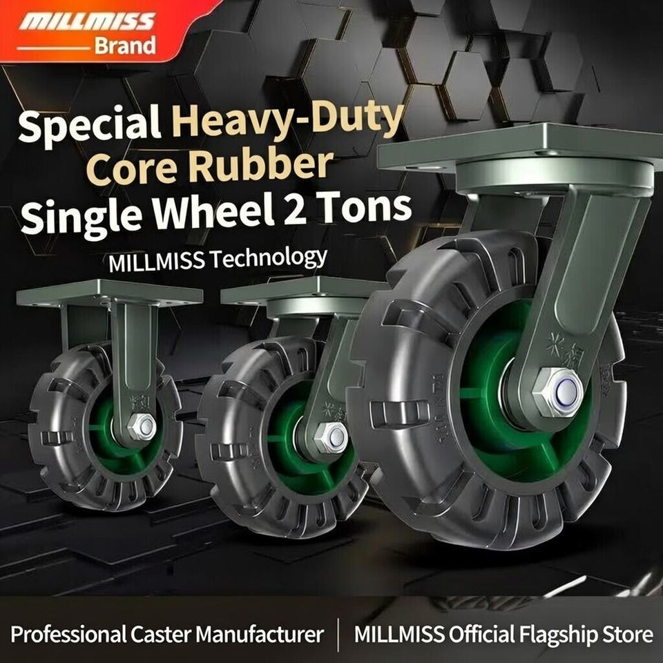 ล้อเลื่อนยางแบบหนา Millmiss ขนาด 6-12 นิ้ว รับน้ำหนัก 2 ตัน ล้อหมุนอเนกประสงค์ สำหรับรถเข็นอุตสาหกรรม