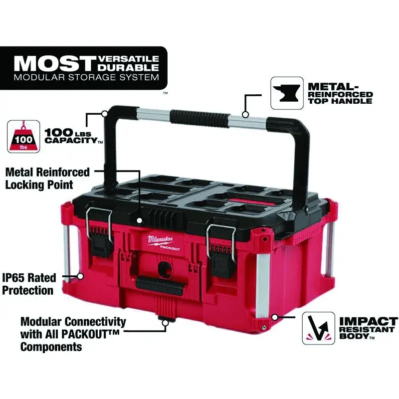 กล่องเครื่องมือขนาดใหญ่ PACKOUT 48-22-8425 ทนทาน รับน้ำหนักได้ 100 ปอนด์ ปิดผนึกกันน้ำระดับ IP65 กล่องเครื่องมือขนาดใหญ่
