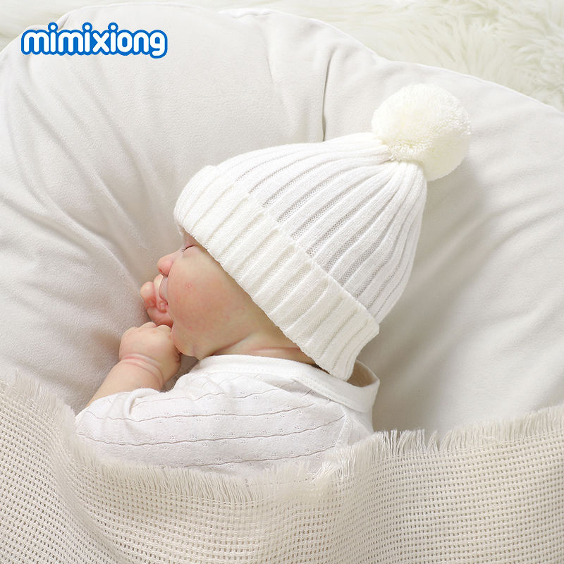 หมวกไหมพรมถักโครเชต์สำหรับเด็กแรกเกิด ลายปอมปอมน่ารัก แบบไร้รอยต่อ