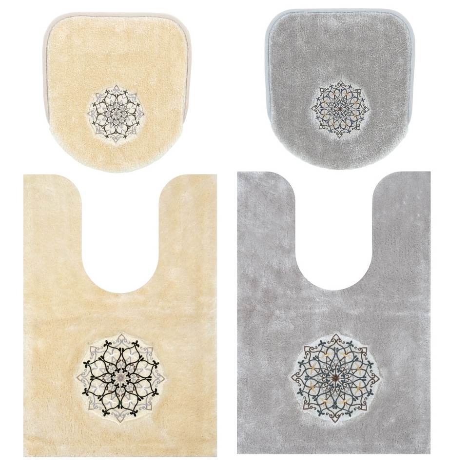 Mina Carly Luxury High Quality 2-Piece Bathroom Set Beige/Gray Ceramic Pattern Ear-Long Toilet Mat Lid Cover Compatible Home M+