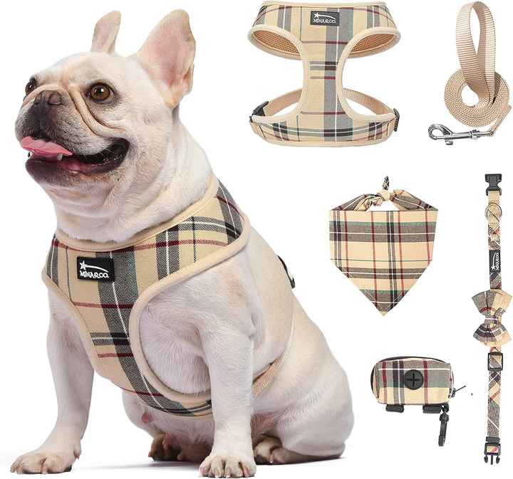 Mina & Co สำหรับสุนัขขนาดเล็กชุดตาข่ายแบบไม่สามารถดึงได้สุนัขขนาดกลางปลอกคอลูกสุนัขและสายจูงพร้อมผ้าพันคอและถุงอุจจาระสุนัข