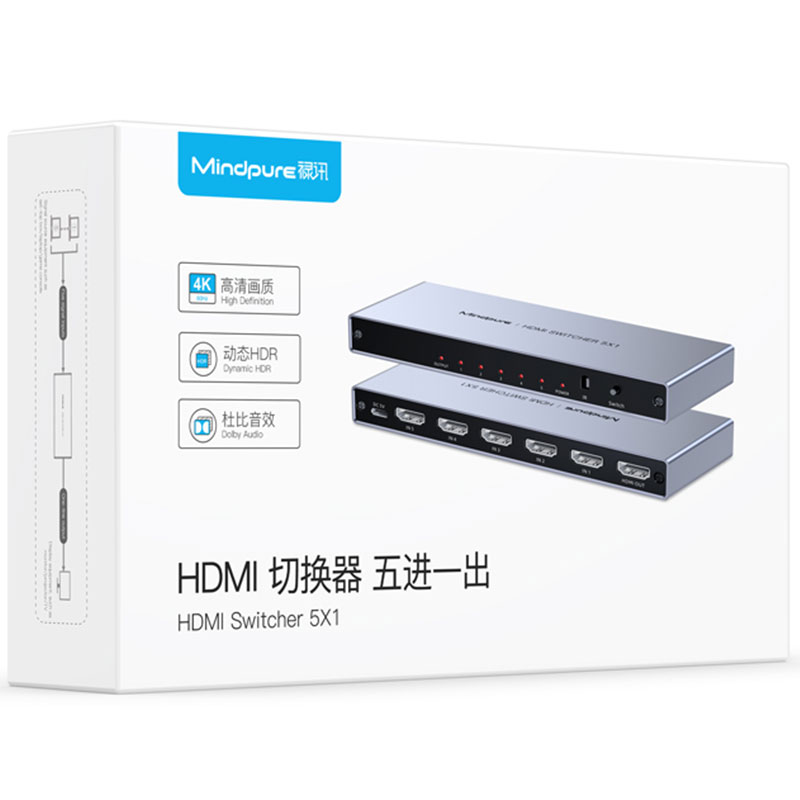 Mindpure High Quality 5x1 HDMI Switcher Splitter 4K 60hz 5 Port Video HDMI Switch 5-port 5 Input 1 Output 3D With IR RF Remote