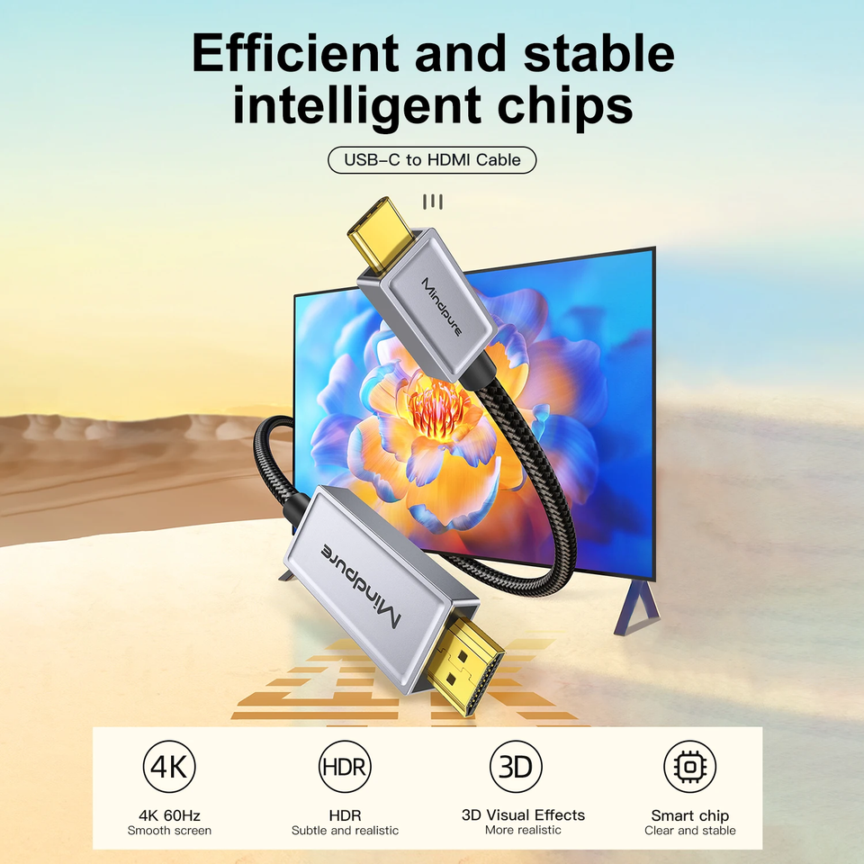 สายเคเบิล Mindpure Premium 1.8 เมตร 1.2 เมตร 6 ฟุต 4K 60Hz USB-C เป็น HDMI ตัวแปลง Type-C เป็น HDMI สำหรับ iPhone Huawei Samsung และแล็ปท็อป