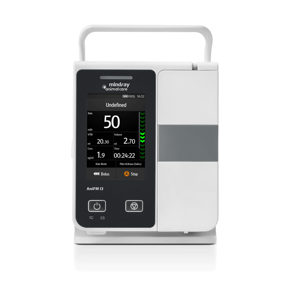 เครื่องปั๊มฉีดยาสัตว์ Mindray AniFM I3 พร้อมหน้าจอสัมผัส 3.5 นิ้ว และระบบควบคุมอัตราการไหลที่แม่นยำสำหรับการดูแลสัตว์