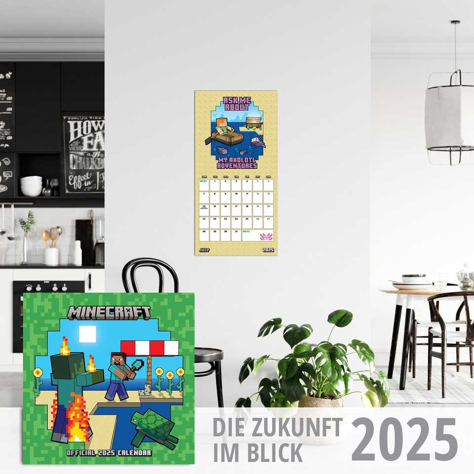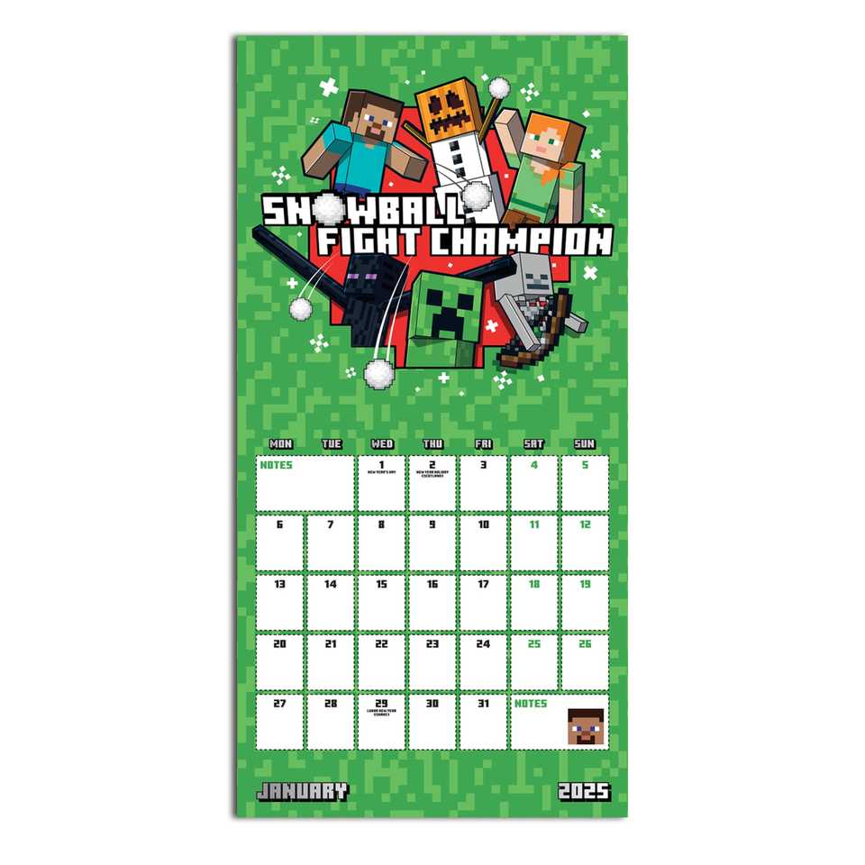 ปฏิทินติดผนัง Minecraft 2025 ดีไซน์ที่มีฉากธีม Minecraft ตลอดทั้งปี