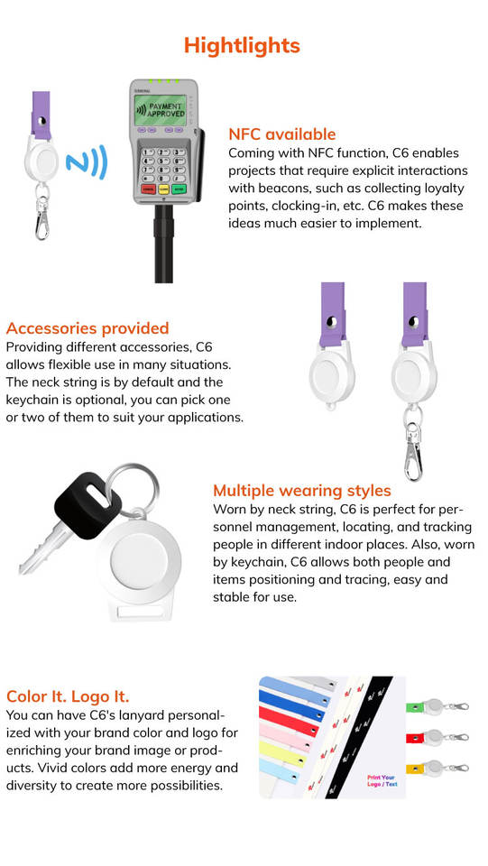 Minew C6 eddystone iBeacon แท็กติดตาม5.0บลูทูธสวมใส่ได้ป้ายสัญญาณเตือนแบบนอร์ดิกสำหรับการติดตามบุคลากรในงานนิทรรศการ