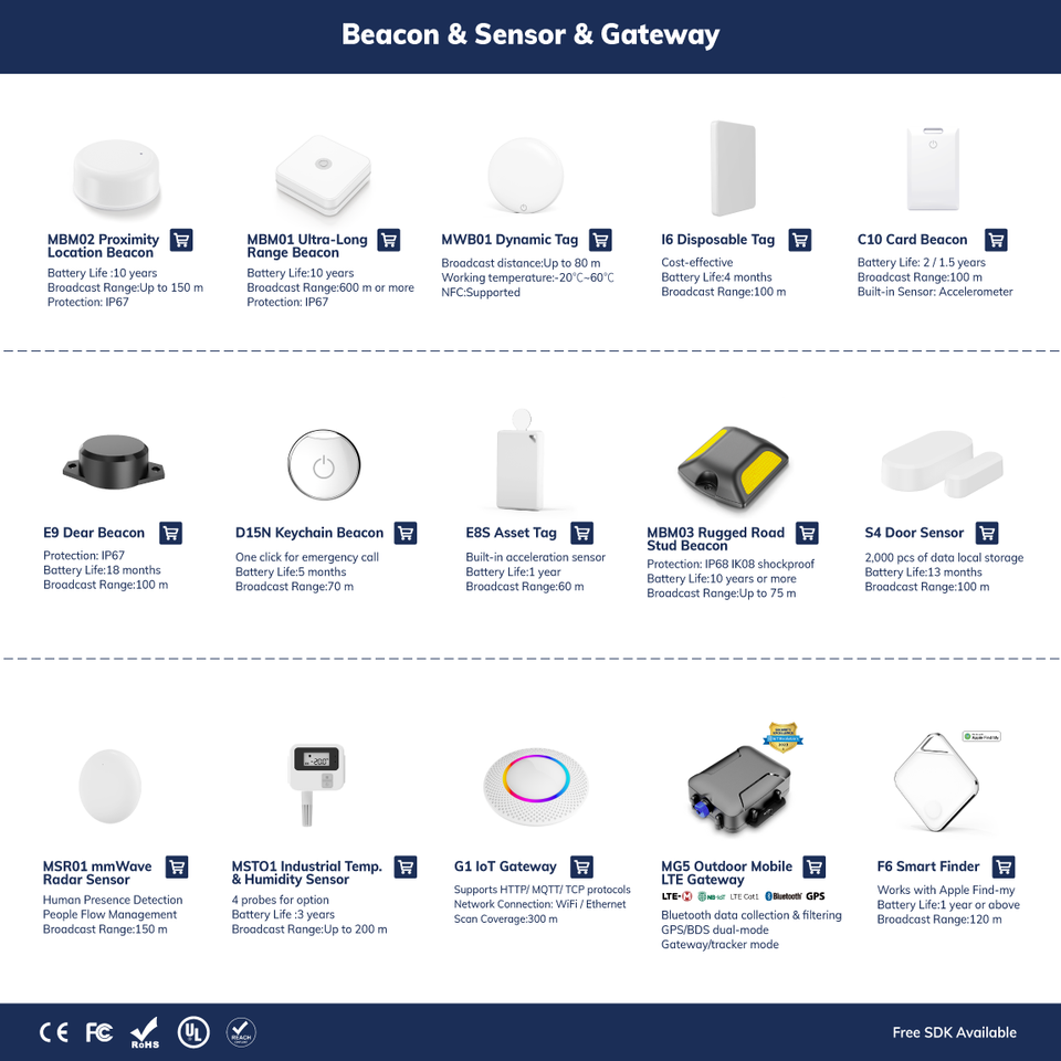 โปรโตคอล:Ibeacon, Eddystone และเซ็นเซอร์เป็นตัวเลือก