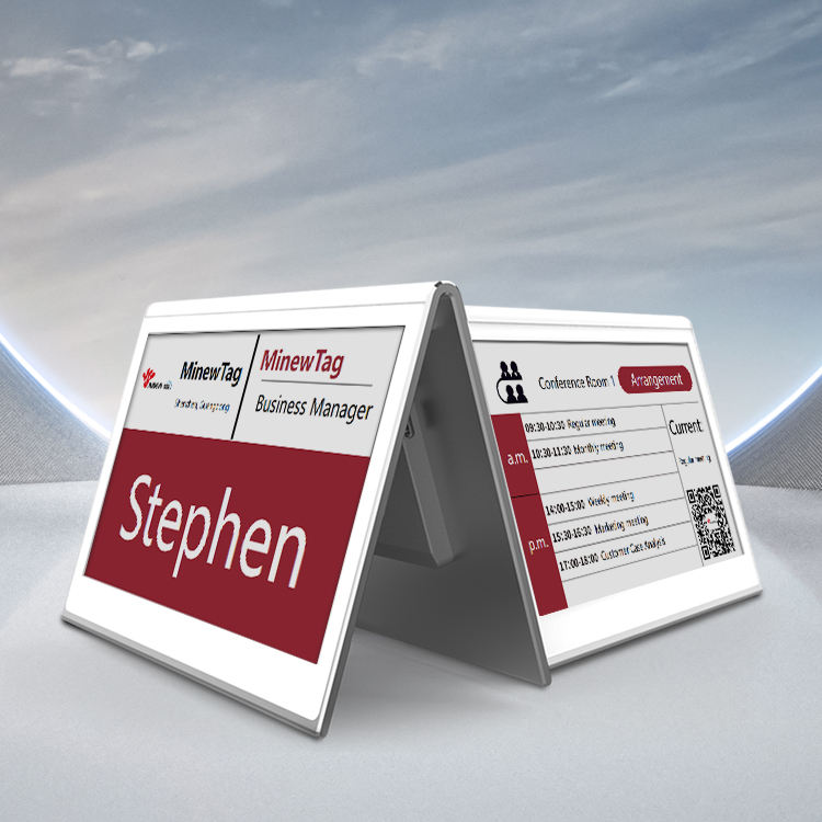 Minewtag แผ่นชื่อตัววีไร้สายบเบิลสองหน้าสำหรับการประชุมการประชุมอิเล็กทรอนิกส์แผ่นชื่อไฟฟ้าขนาด7.5นิ้ว ABS พลาสติกสำหรับการประชุม