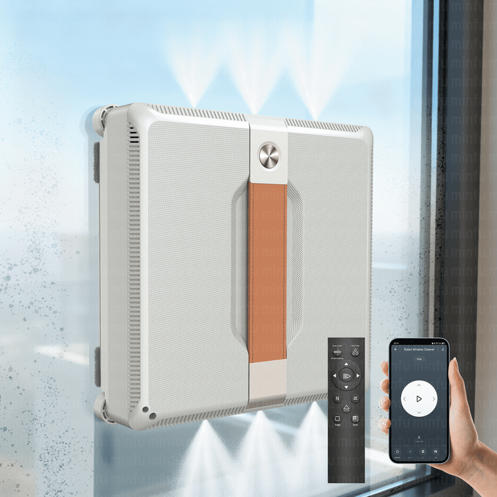หุ่นยนต์ทำความสะอาดกระจกมินฟู อัตโนมัติ หัวฉีดน้ำ 6 หัว ควบคุมผ่านแอพพลิเคชั่น แรงดูด 7000Pa หุ่นยนต์ทำความสะอาดกระจกไฟฟ้าแบบบาง