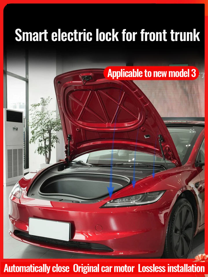 ฝาครอบด้านหน้ารถยนต์เทสล่า รุ่น 3/Y/X/S ของโรงงานหมิงอ่าว ราคาโรงงาน ผลิตใหม่ พร้อมระบบล็อคไฟฟ้าอัตโนมัติแบบดูด พร้อมไฟ LED ทำจากยาง
