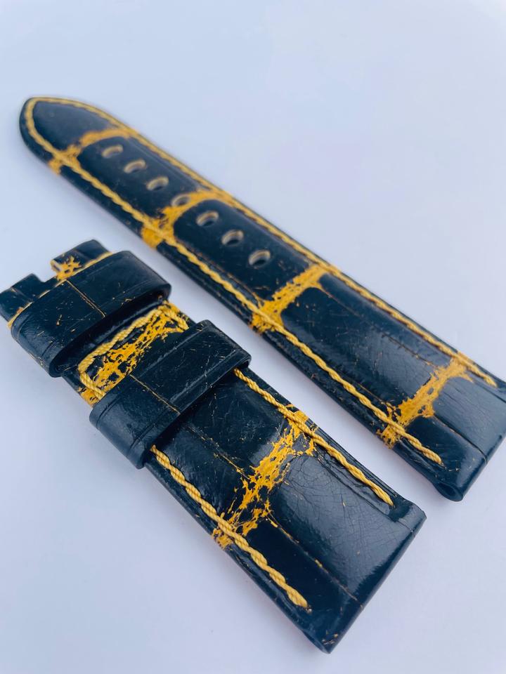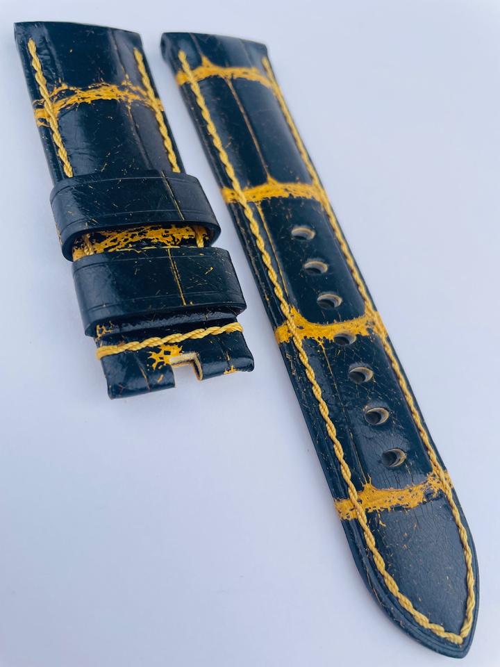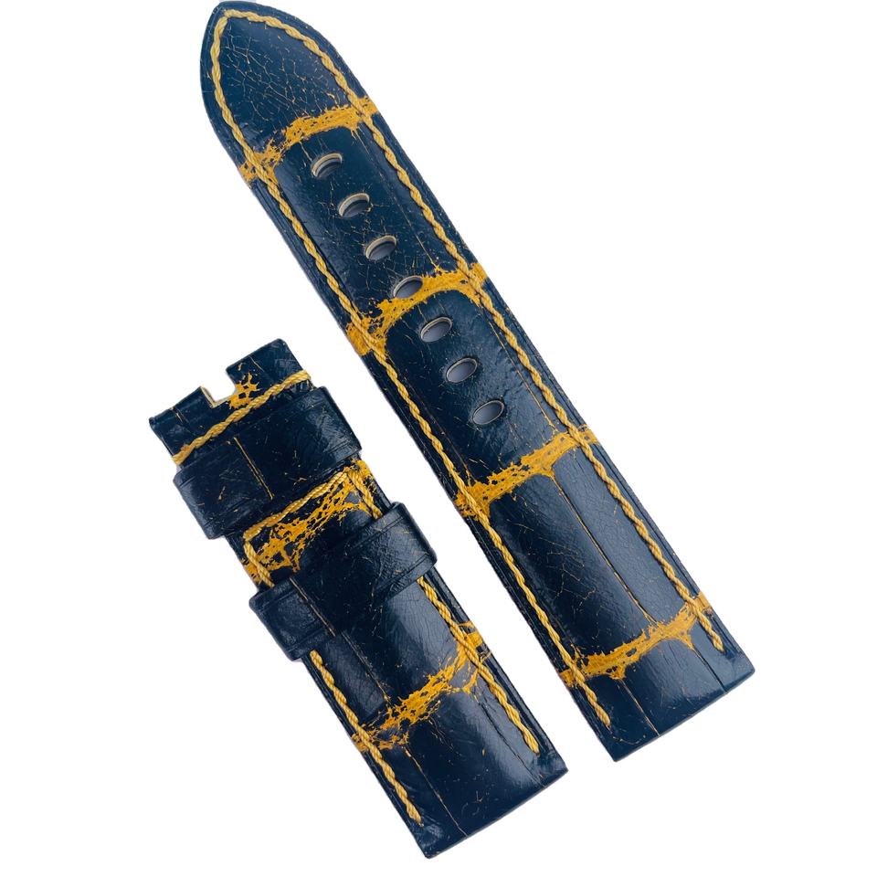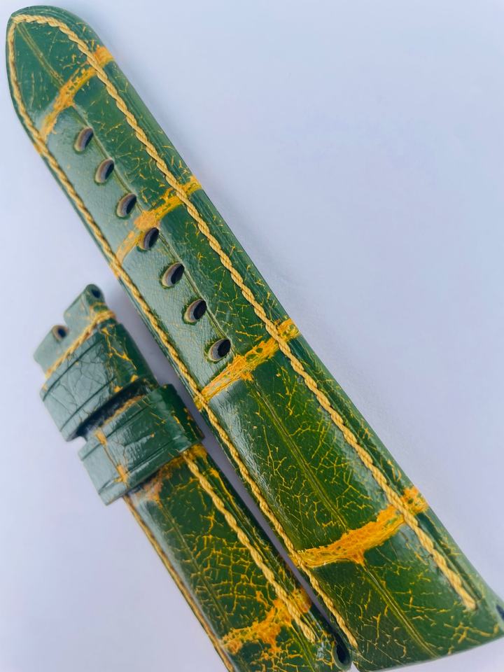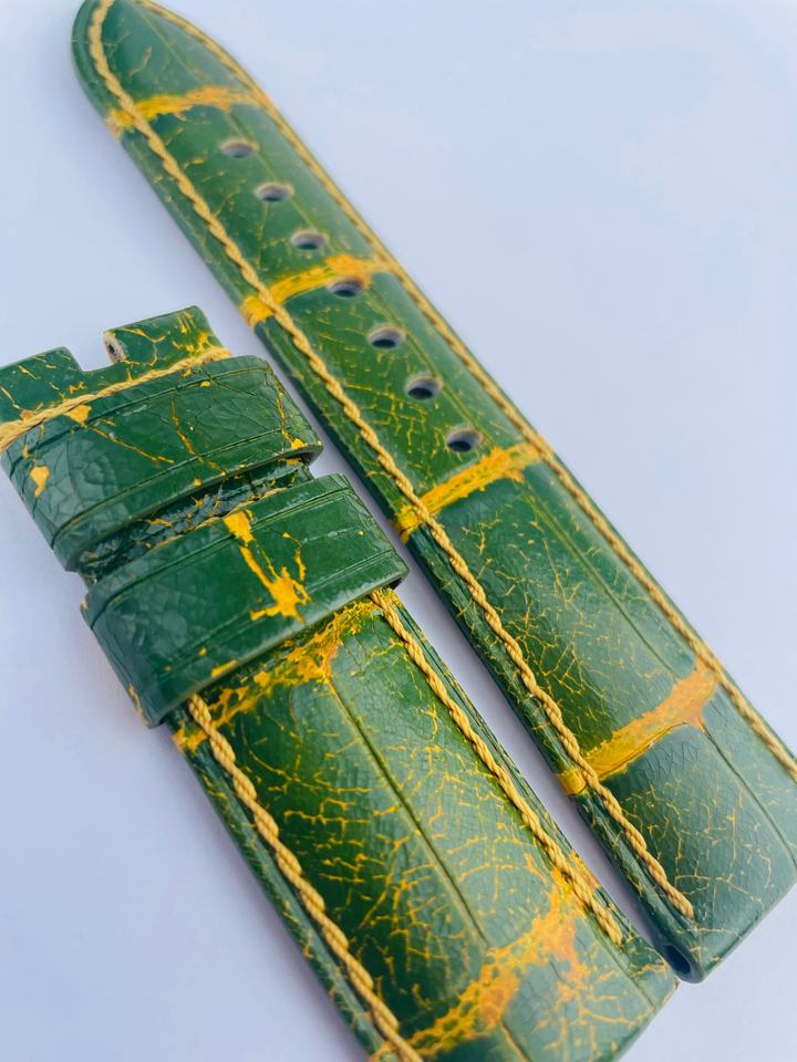 สายนาฬิกาหนังจระเข้เย็บมือสไตล์วินเทจสเปนหลากสี งานแฮนด์เมดออกแบบโดยมิงฟุง พร้อมซับในหนังฟอกฝาดแบบธรรมชาติ