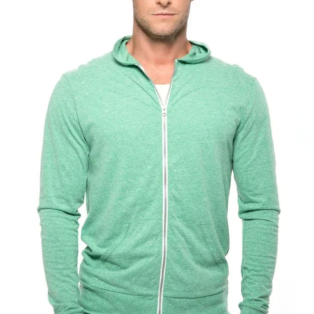 เสื้อฮู้ดซิป Ming Green Tri-blend สำหรับผู้ชาย เสื้อฮู้ดออกกำลังกายแขนยาว เสื้อฮู้ดกีฬา เสื้อยืดลำลองสำหรับวิ่ง