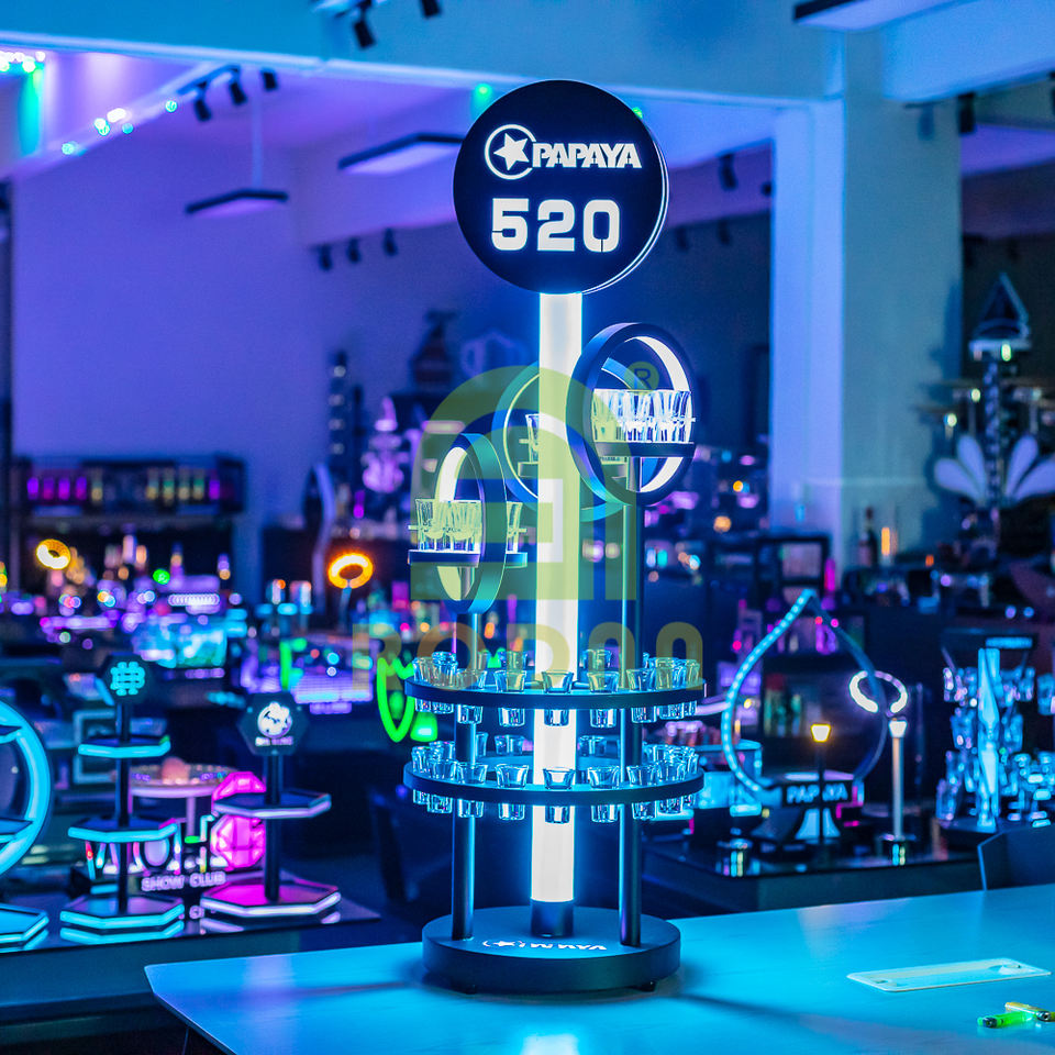 Mingxin barware ถาดวางแก้วยิงเลเซอร์คู่ไฟ LED ฉันรักคุณ