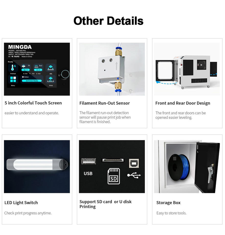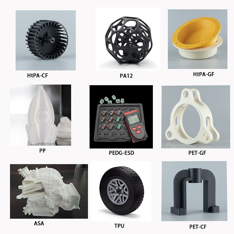 วัสดุสนับสนุน:พลาสติกชีวภาพ PLA, ABS, เม็ดพลาสติก PETG, เทอร์โมพลาสติกโพลียูรีเทน, แผ่นคาร์บอนไฟเบอร์