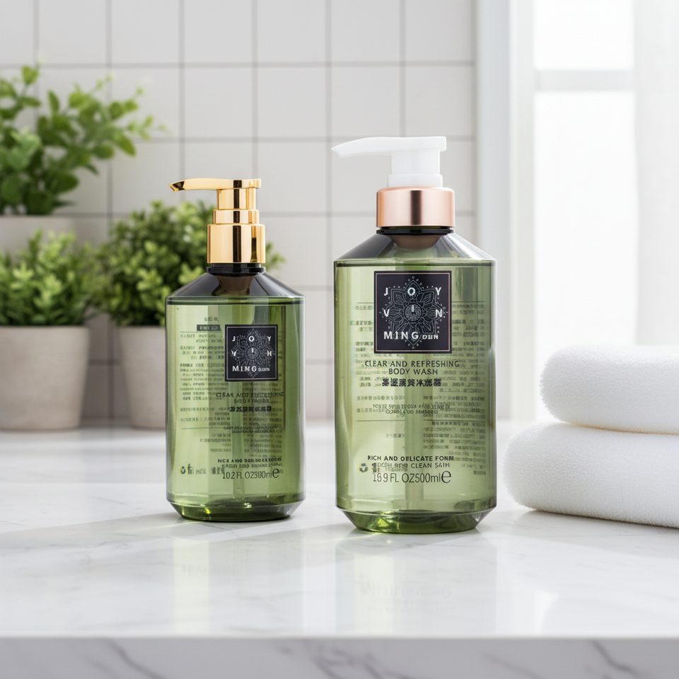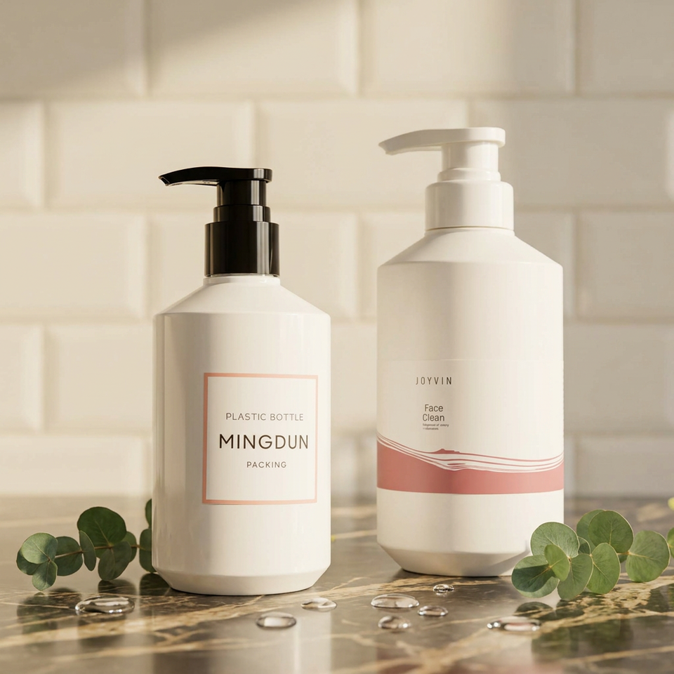 ขวดพลาสติก PETG ใส Mingdun 300/500 มล. ขายดี สำหรับเจลอาบน้ำ ผลิตภัณฑ์ดูแลเส้นผม ดีไซน์สี่เหลี่ยมแบนสีขาว ขวดปั๊มสำหรับแชมพูและครีมล้างหน้า