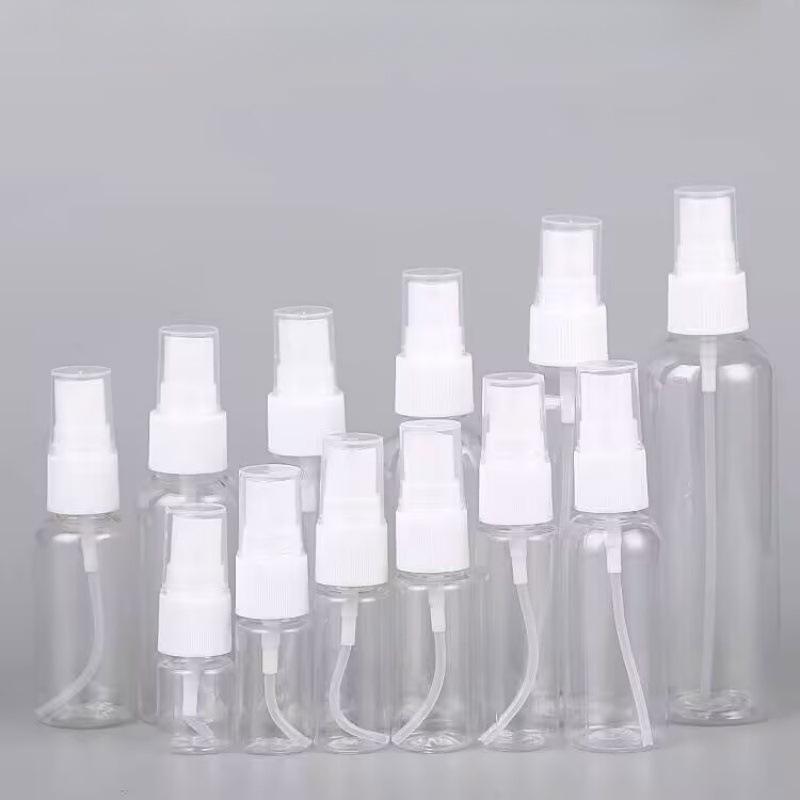ขวดสเปรย์ใส Mingxu ขนาด 20 30 50 100 มล. ขวดพลาสติก PET สำหรับพ่นละอองละเอียด ชุดผลิตภัณฑ์ดูแลผิวสำหรับเดินทาง
