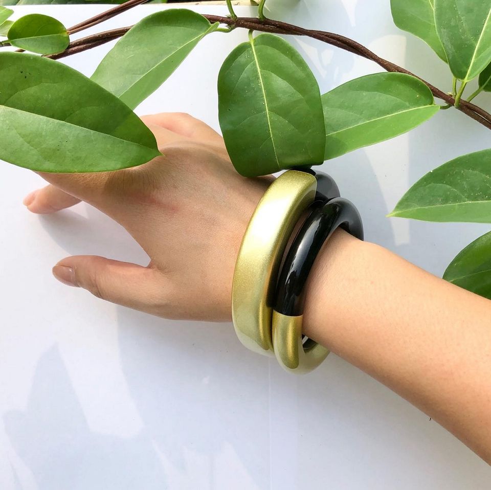 Minh Giang กำไลข้อมือเขาควายงานฝีมือทำมือวงกว้างมีลวดลายตัดตามธรรมชาติ