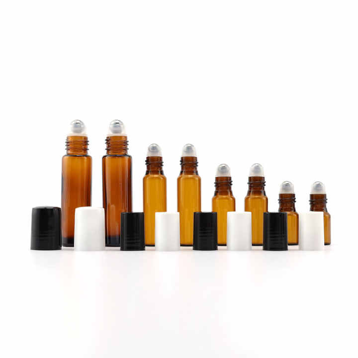 มินิ1 2 3 5 8 10มิลลิลิตรหลอดลูกกลิ้งเครื่องสำอางสีเหลืองอำพันล้างม้วนบนขวด/ขวด/ขวดแก้วสำหรับน้ำหอมที่มีหมวก
