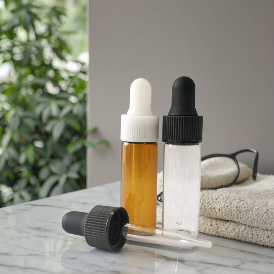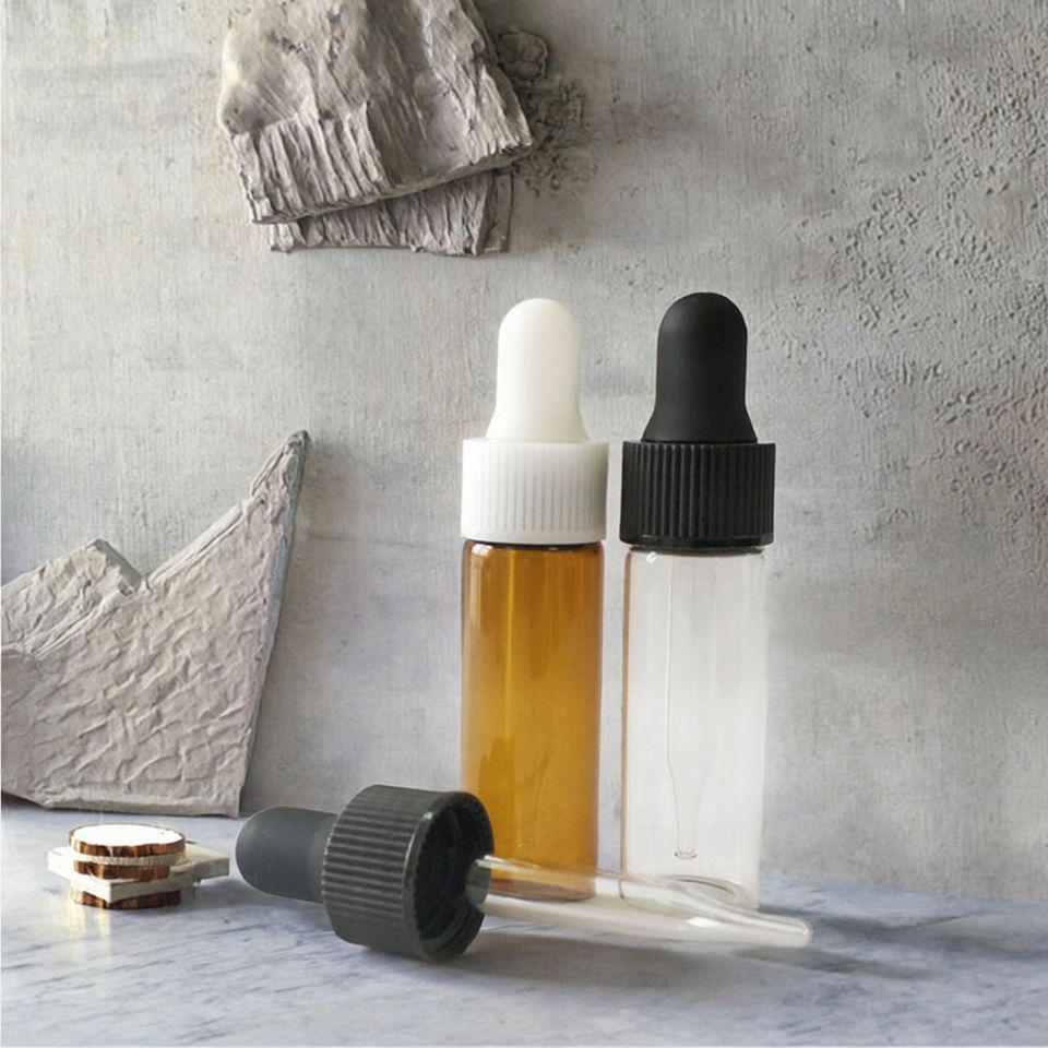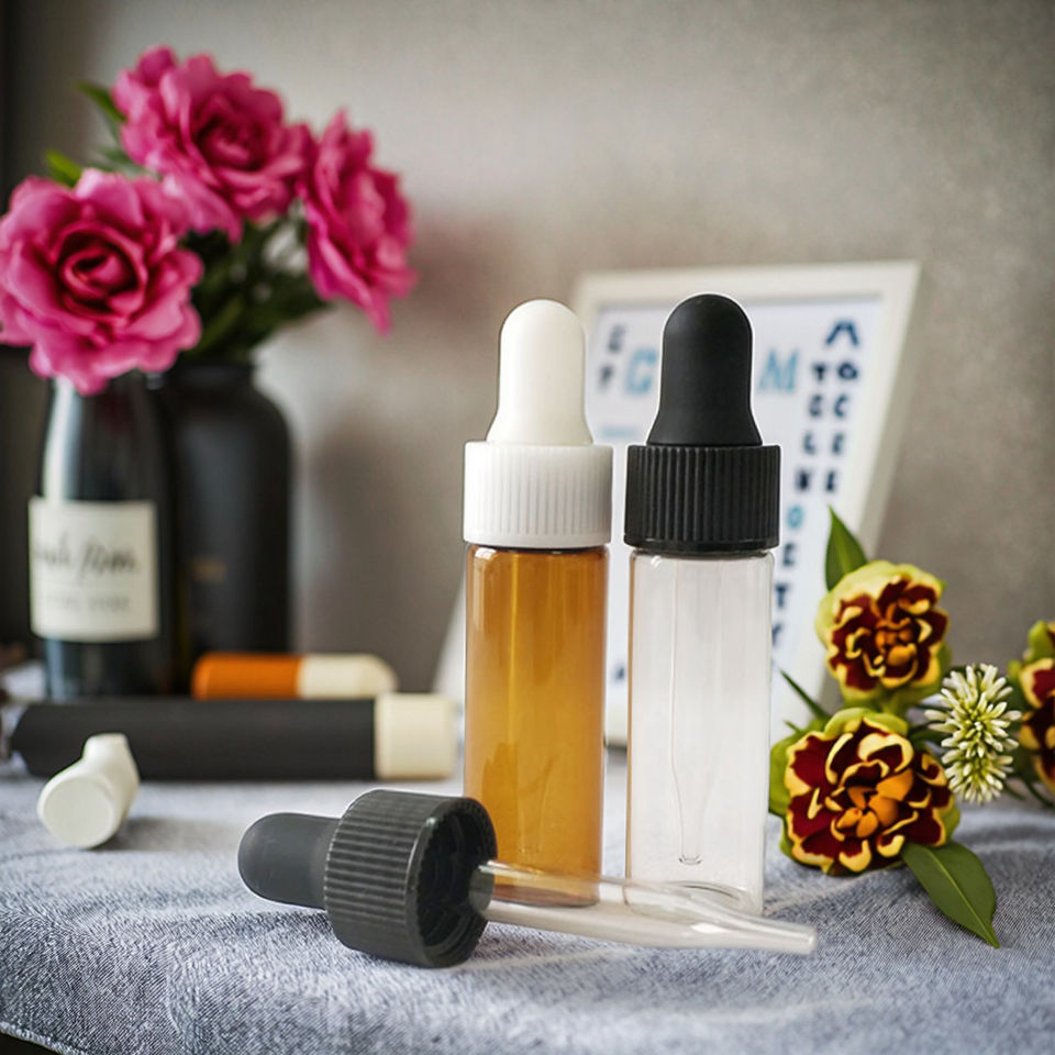 ขวดหยดน้ำมันหอมระเหยแบบใสขนาด1มล. ภาชนะใส่ของเหลวสำหรับเดินทางขวดแก้ว
