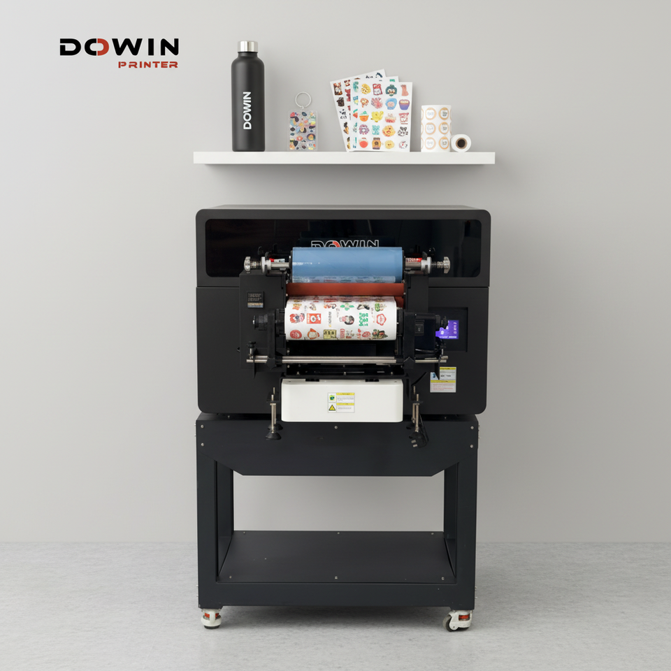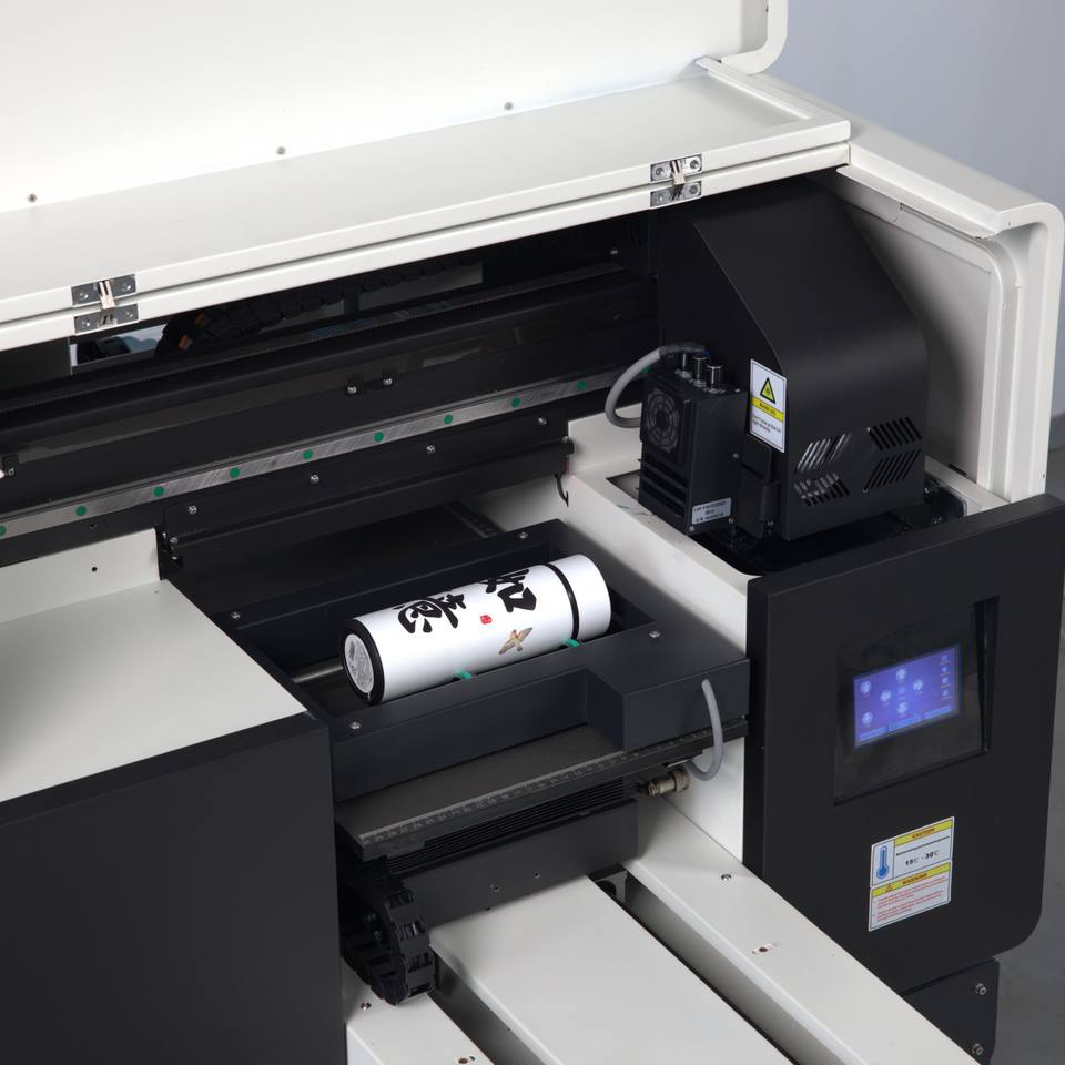 เครื่องพิมพ์หนังแบบม้วน UV DTF ขนาดมินิ A3 สี CMYK ปรับแต่งได้ สำหรับตกแต่งแผ่นอะคริลิค ขนาด 30*40 ซม. แบบแท่นราบ XP600 อัตโนมัติ