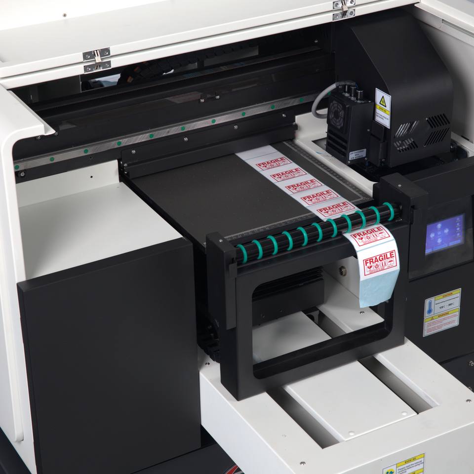 การพิมพ์ฉลาก, การพิมพ์ยูวีแบบแฟลตเบด, การพิมพ์แบบม้วนต่อม้วนประเภทการประยุกต์ใช้การพิมพ์
