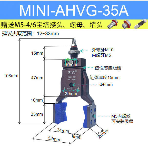 อุปกรณ์จับยึดแบบแม่เหล็กสำหรับแขนหุ่นยนต์ขนาดเล็ก Mini-AHVG สำหรับจับวัตถุที่มีรูปทรงไม่ปกติ ช่องจับขนาดใหญ่