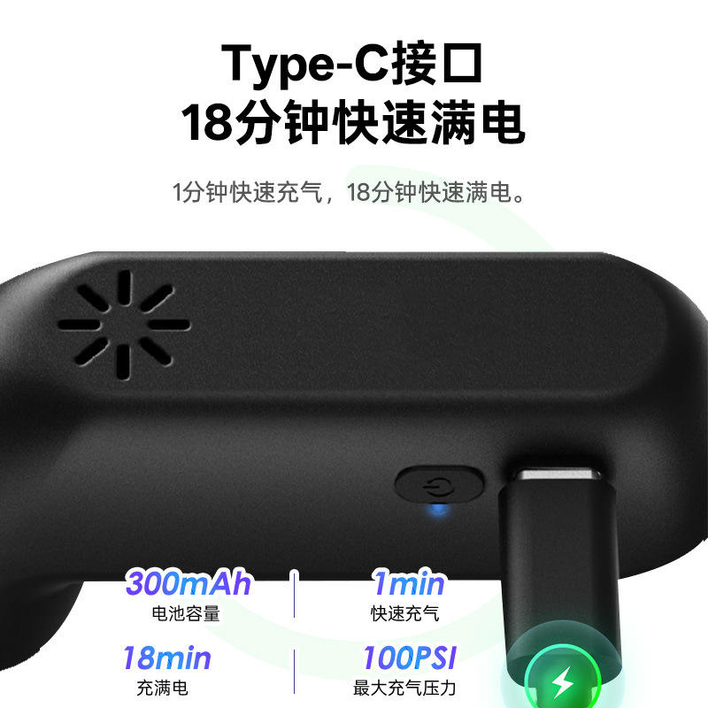 ปั๊มลมขนาดเล็กสำหรับจักรยานเสือภูเขาพร้อมมอเตอร์ไร้แปรงถ่าน 80-130 ปอนด์ต่อตารางนิ้ว น้ำหนักเบา ชาร์จแบบ Type C หัวฉีดสีดำพร้อมอะแดปเตอร์