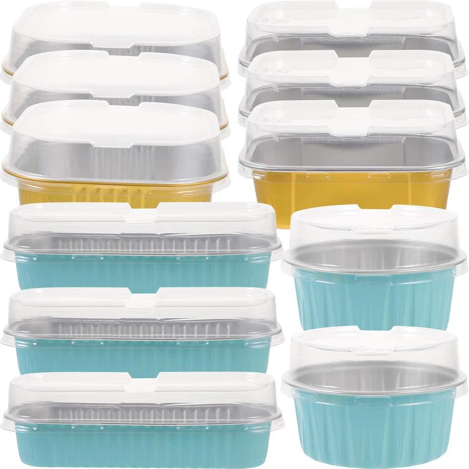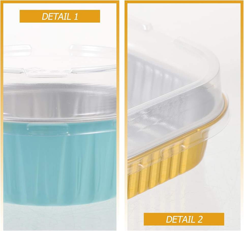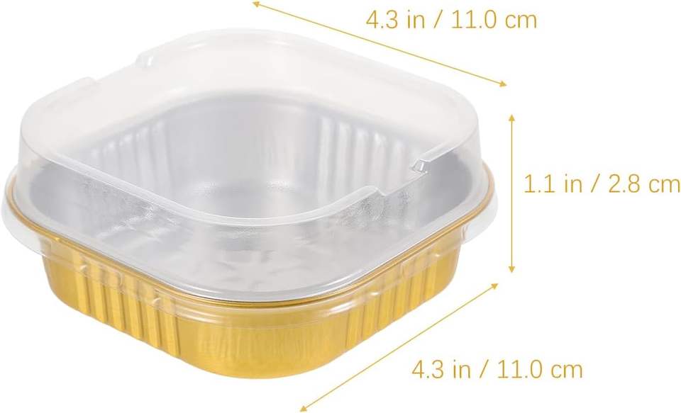 ถาดอบขนมปังอะลูมิเนียมขนาดเล็กพร้อมฝาพลาสติกและช้อน เหมาะสำหรับการอบและอาหารแบบซื้อกลับบ้าน