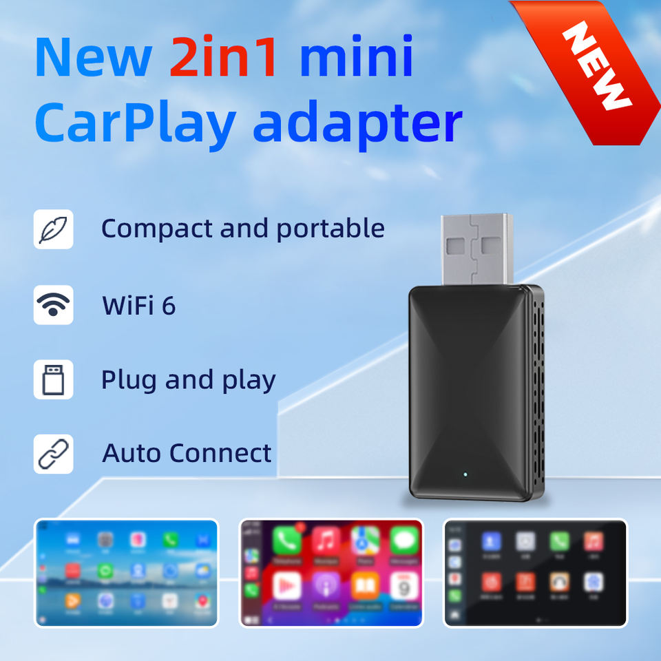 Mini Android Auto CarPlay Plug and Play 2-in-1 Wireless Adapter