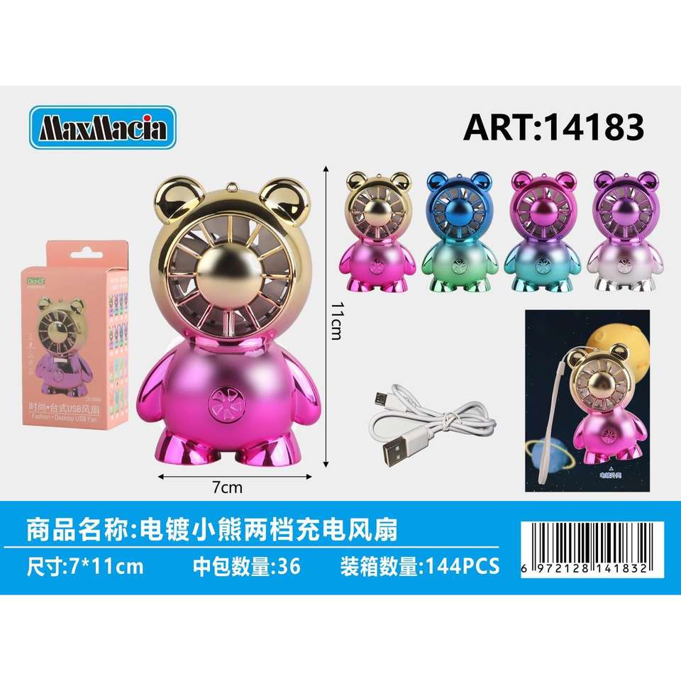Mini Bear USB Rechargeable 3-Speed Fan Air Cooling Desktop Fan with Two Speed Settings Battery Powered for Household Use