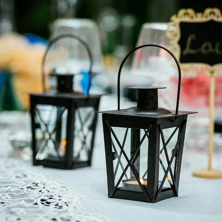 มินิสีดำและสีขาวขนาดใหญ่สวนแก้วสแตนเลสโลหะตกแต่ง LED อื่นๆเชิงเทียนโคมไฟกลางแจ้ง