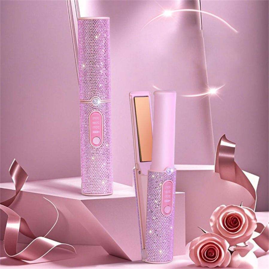 Mini Bling Usb Wireless Rechargeable Portable Hair Straightener Curler Flat Iron Professional Cordless Travel Hair Straightener
