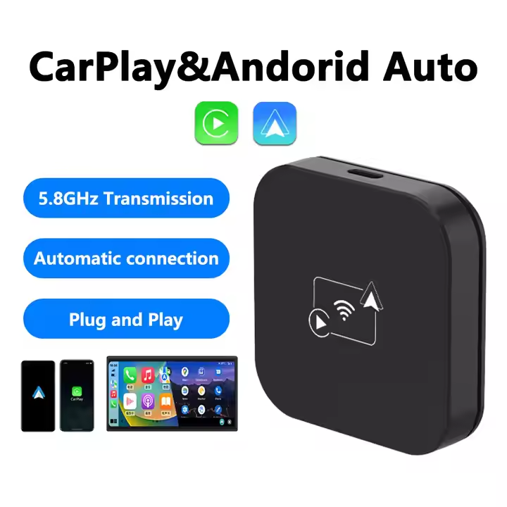 กล่องขนาดเล็กแบบมีสายเป็น CarPlay ไร้สายและอะแดปเตอร์ไร้สายแอนดรอยด์แบบไร้สายมีปลั๊กแอนด์เพลย์สำหรับรถยนต์ทั่วไป