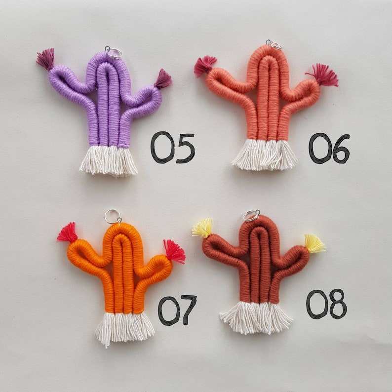 พวงกุญแจกระบองเพชรมินิ,ชาร์มถุงกระบองเพชร Macrame,แท็กกระเป๋า