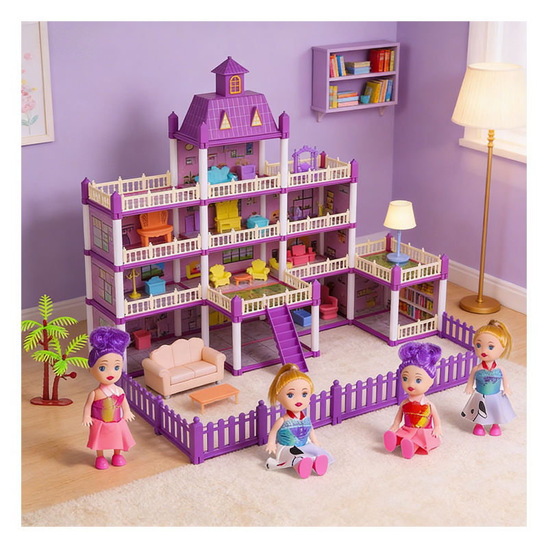 บ้านตุ๊กตาปราสาทพลาสติกขนาดเล็ก พร้อมห้องนอน ห้องครัว ห้องน้ำ ระเบียง เฟอร์นิเจอร์ ของเล่นเสริมสร้างจินตนาการ ของขวัญสำหรับเด็กและครอบครัว