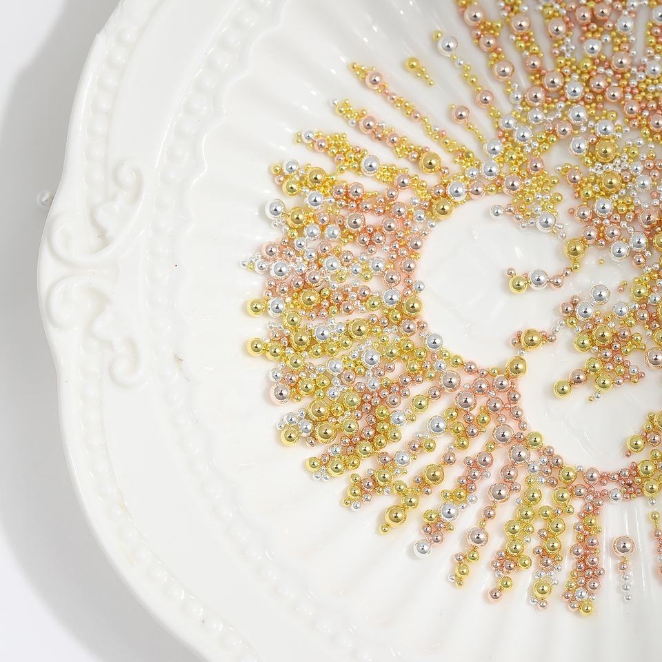 ลูกปัดโลหะคาเวียร์ขนาดเล็กเม็ดกลมเหล็กต่างหูคาเวียร์สีทอง/สีเงิน/สีโรสโกลด์3D ลูกปัดประดับเล็บ