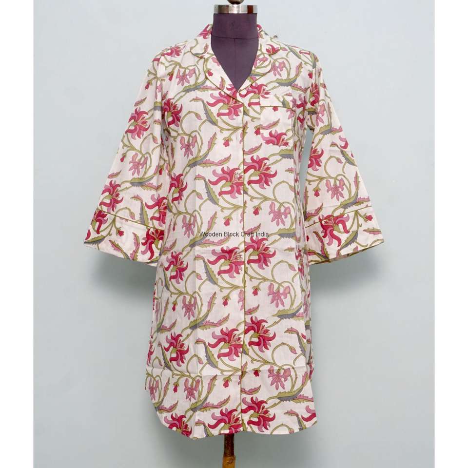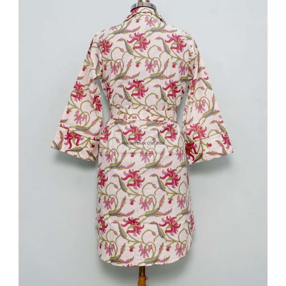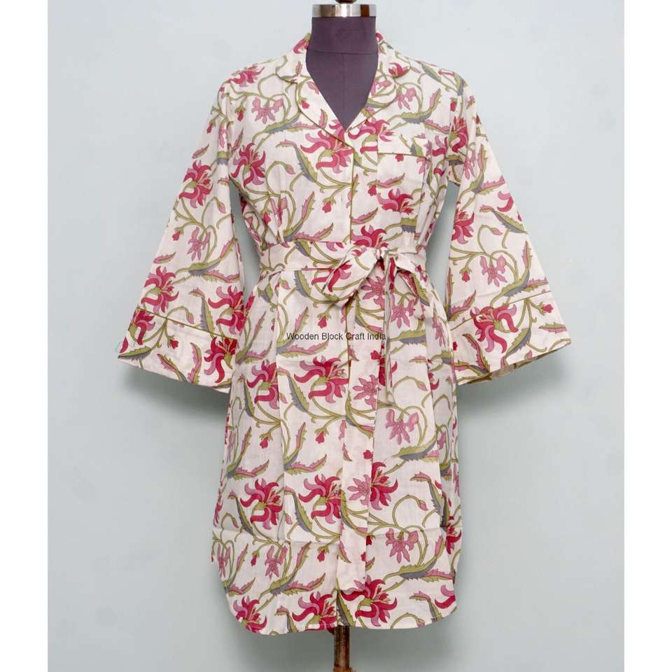 เดรสทรงเอไลน์ผ้าฝ้ายอินเดียลายดอกไม้สำหรับผู้หญิง ดีไซน์แบบผูกเอว กระดุมติดเอวทรงธรรมชาติ สไตล์หรูหรา ลำลอง สบายๆ สำหรับฤดูร้อน