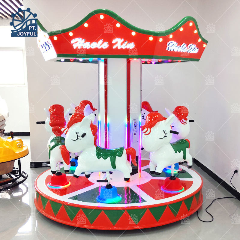 ม้าหมุนสไตล์คริสมาสต์ขนาดเล็กอุปกรณ์ความบันเทิงพร้อมม้าแอลอีดีสำหรับเด็กในร่มเล่นโซนและศูนย์ความสนุกของครอบครัว