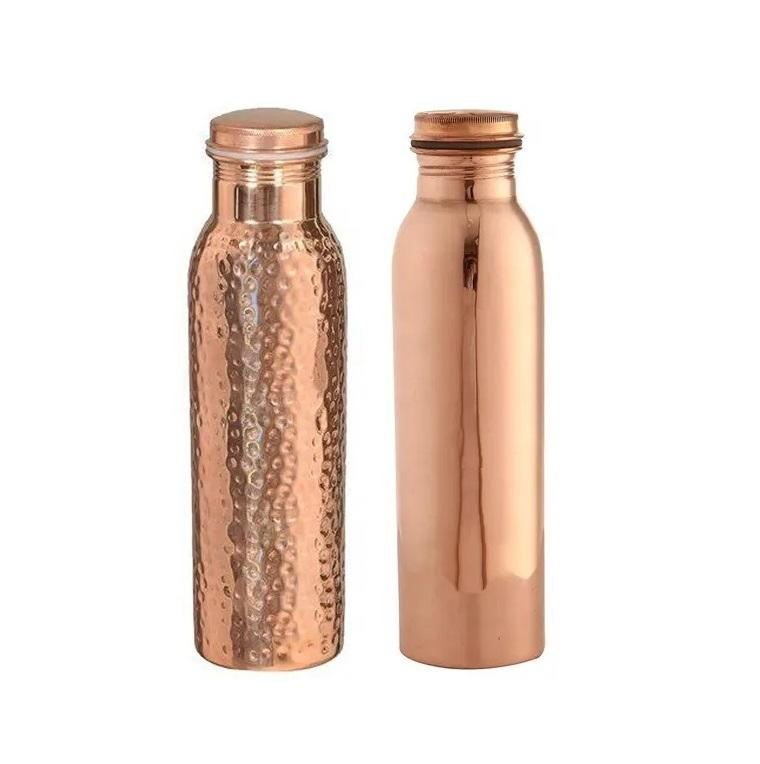 ขวดทองแดงขนาดเล็ก ทำด้วยมือ ทองแดงแท้ ออกแบบโลโก้ได้ ดีเยี่ยมสำหรับออกกำลังกาย ดื่มได้โดยตรง ลายใบไม้สไตล์อินเดีย ขวดสวยหรูที่ดีที่สุด