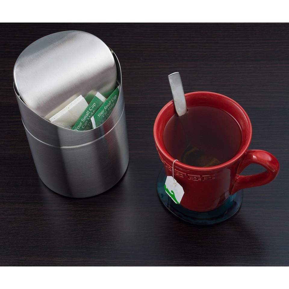 ถังขยะแบบตั้งโต๊ะขนาดเล็ก สแตนเลสขัดเงา ฝาเปิด-ปิดแบบแกว่ง ความจุ 1.5 ลิตร/0.40 แกลลอน พร้อมถุงขยะ หลายสี