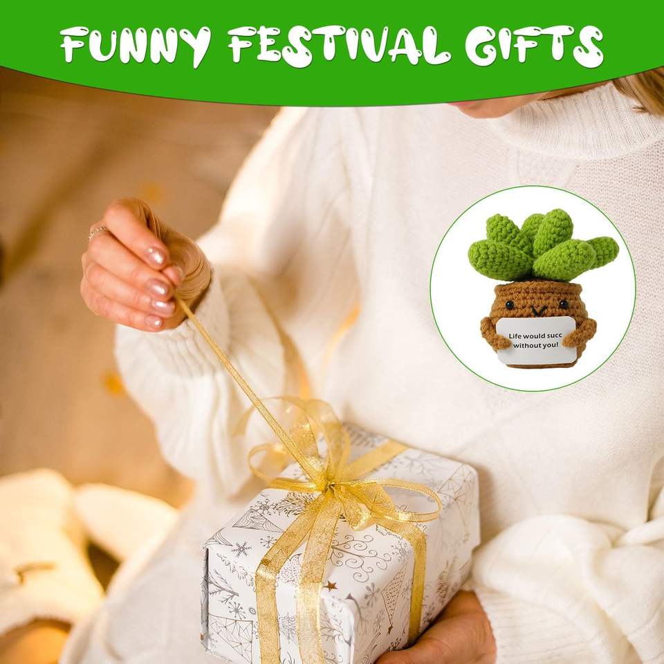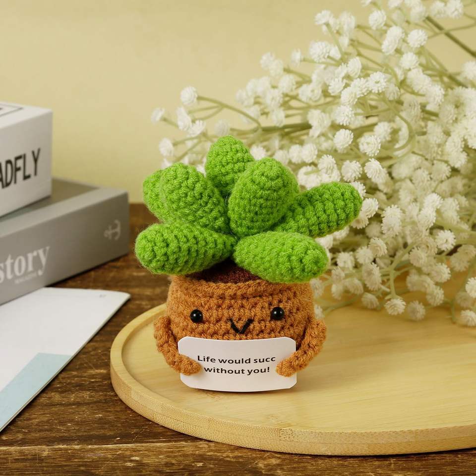 ต้นไม้ในกระถางถักโครเชต์ขนาดเล็กน่ารักทำด้วยมือตุ๊กตามันฝรั่งน่ารัก & อารมณ์บวกตกแต่งชีวิตของขวัญผู้ใหญ่