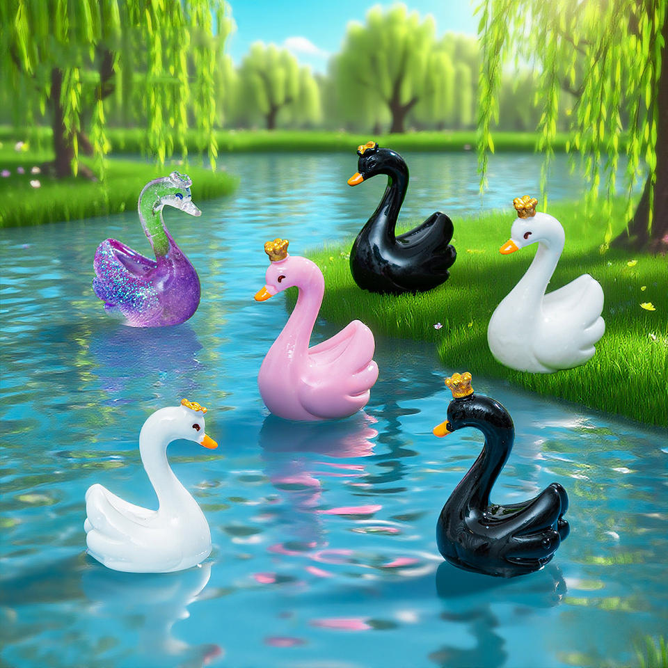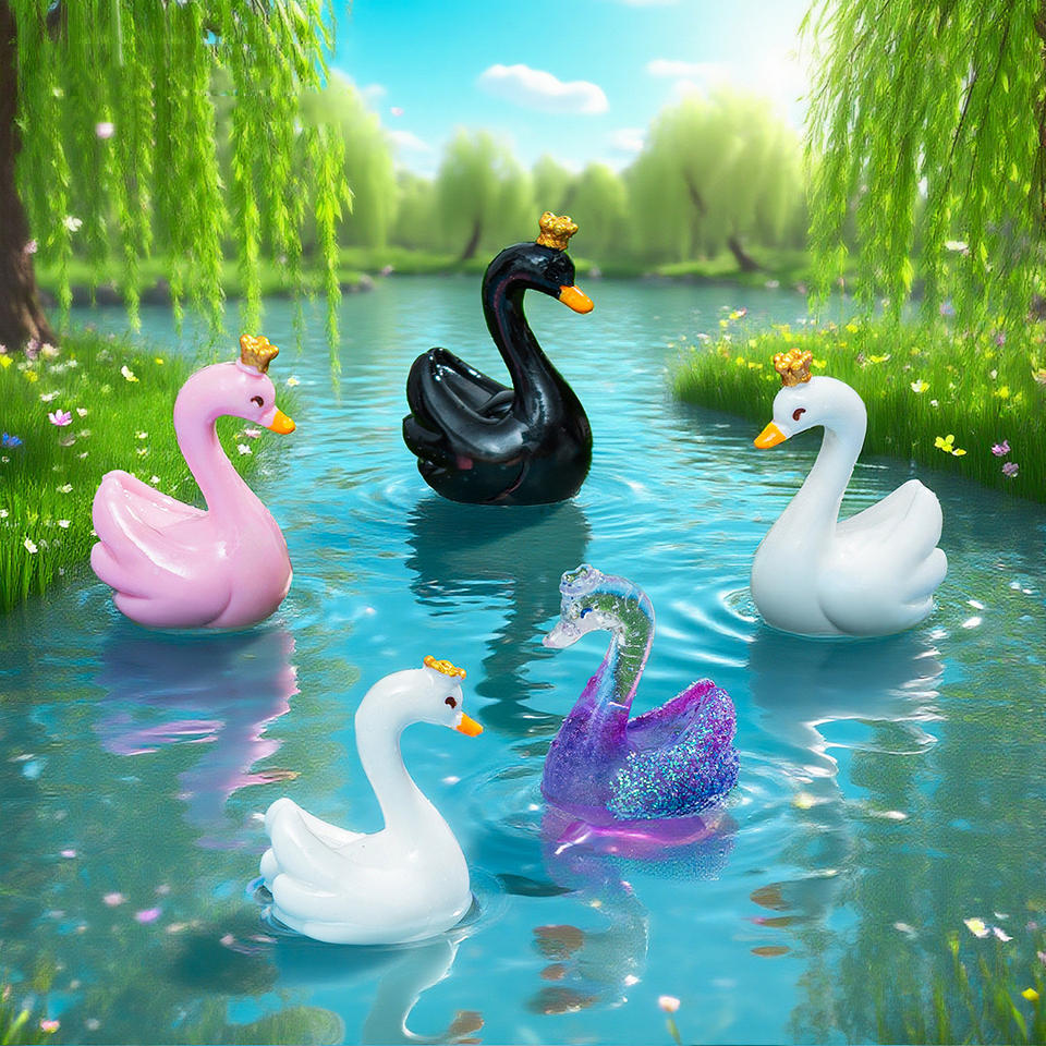 สัตว์เรซิ่นจิ๋ว ขนาดเล็ก รูปปั้นหงส์สวมมงกุฎ